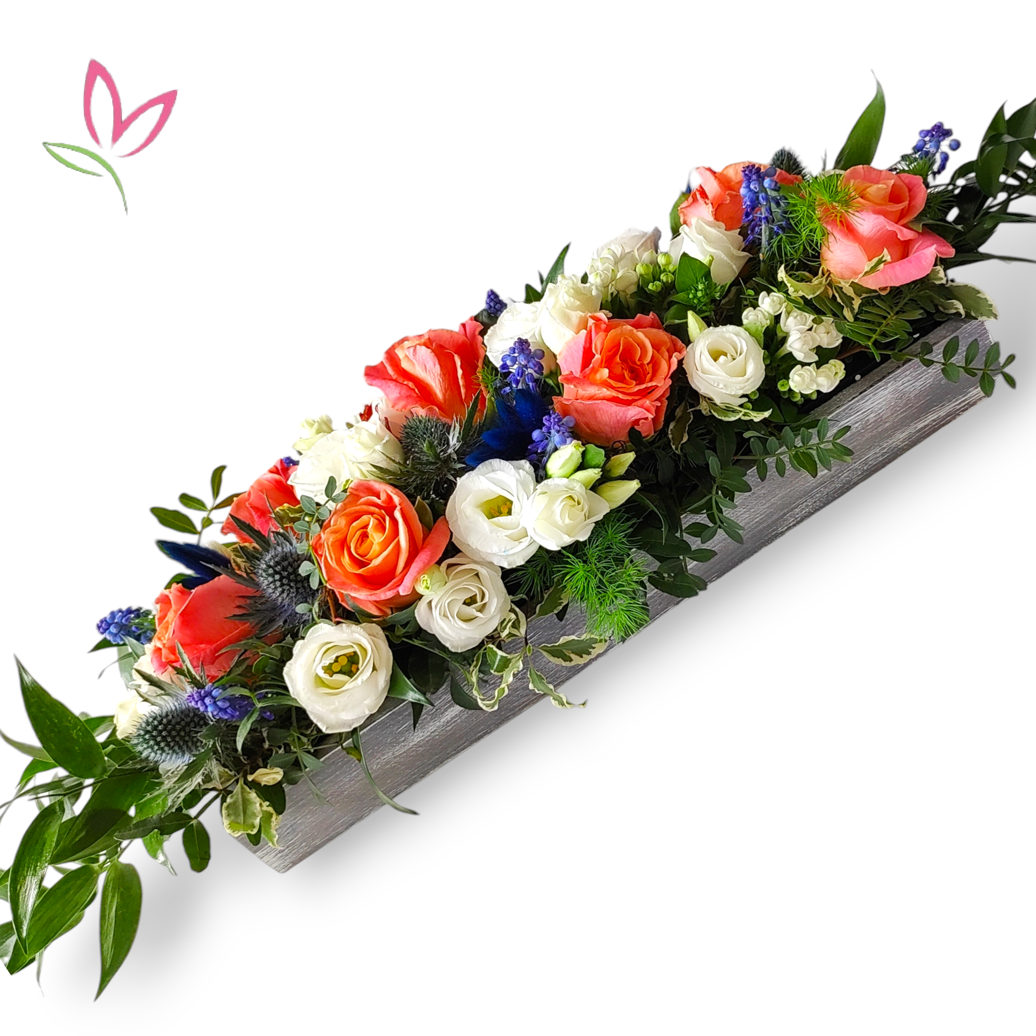 A 40×15 cm-es fa tálba készített hosszúkás virág tál válogatott szezonális virágokból készül, amely tökéletes választás étkezőasztalra, dohányzóasztalra vagy akár ajándéknak is. Letisztult formája és természetes megjelenése miatt bármilyen enteriőrben azonnal az asztal ékévé válik.