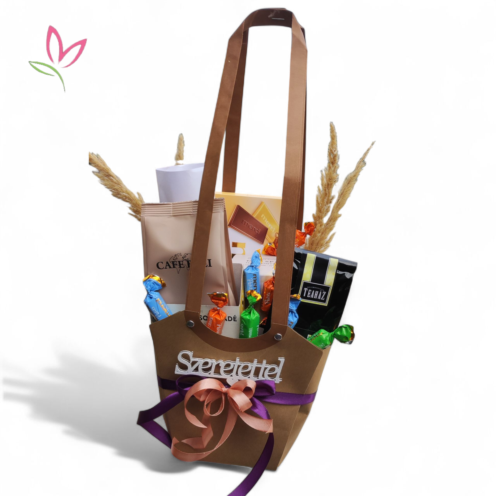 Ajándékoz virág mellé válogatott, minőségi termékeket dísz csomagban.
