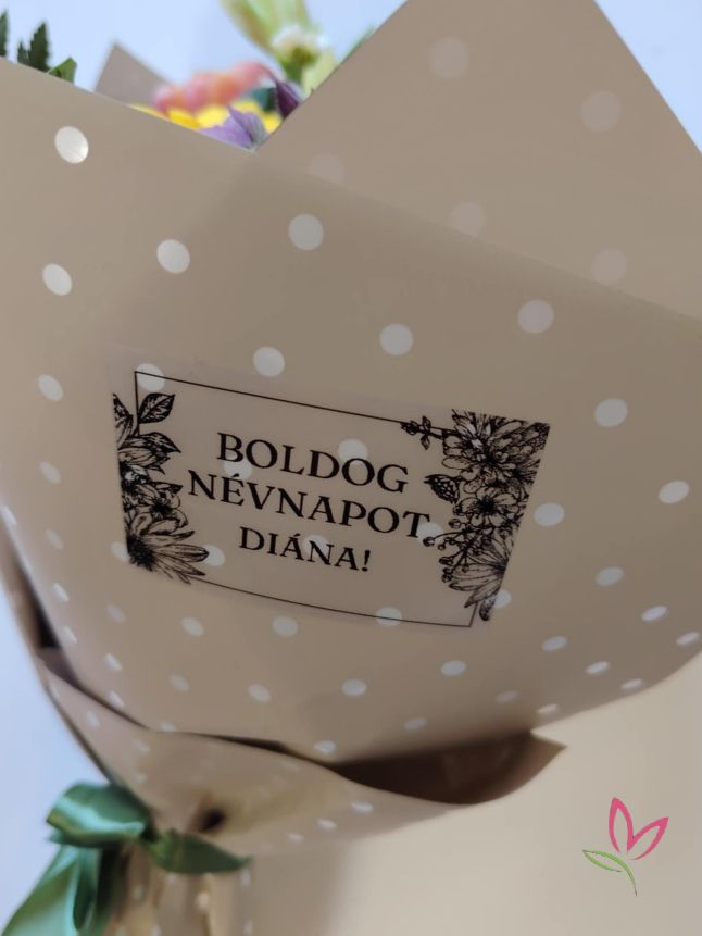 Válasz egyedi 3-5 szavas feliratot virág csokor díszpapírjára vagy virág box dobozára.