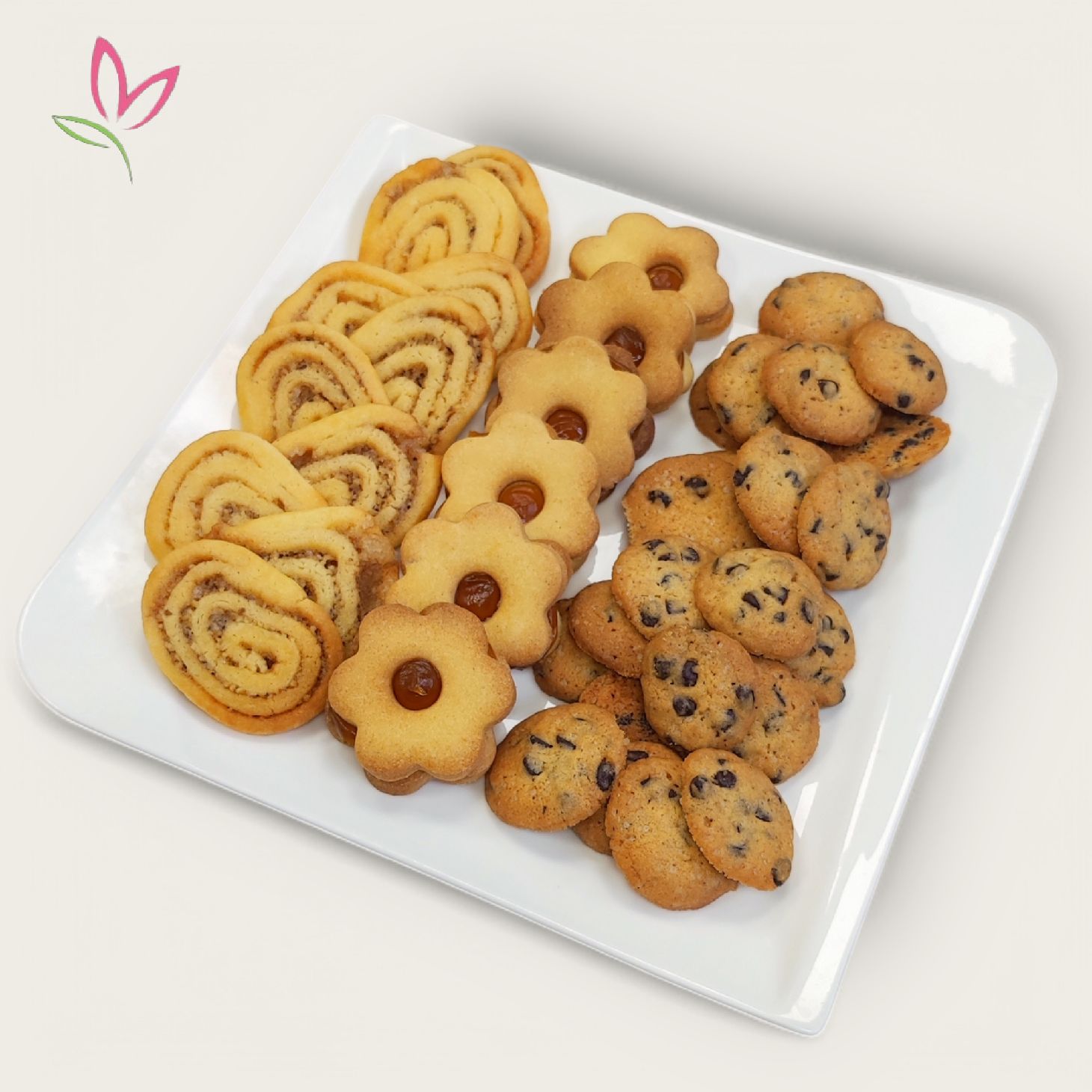 100 g linzer, 100 g csokis keksz és 100 g fahéjas-diós tekercs fínom keksz vállogatás egy ízléses díszobozban.