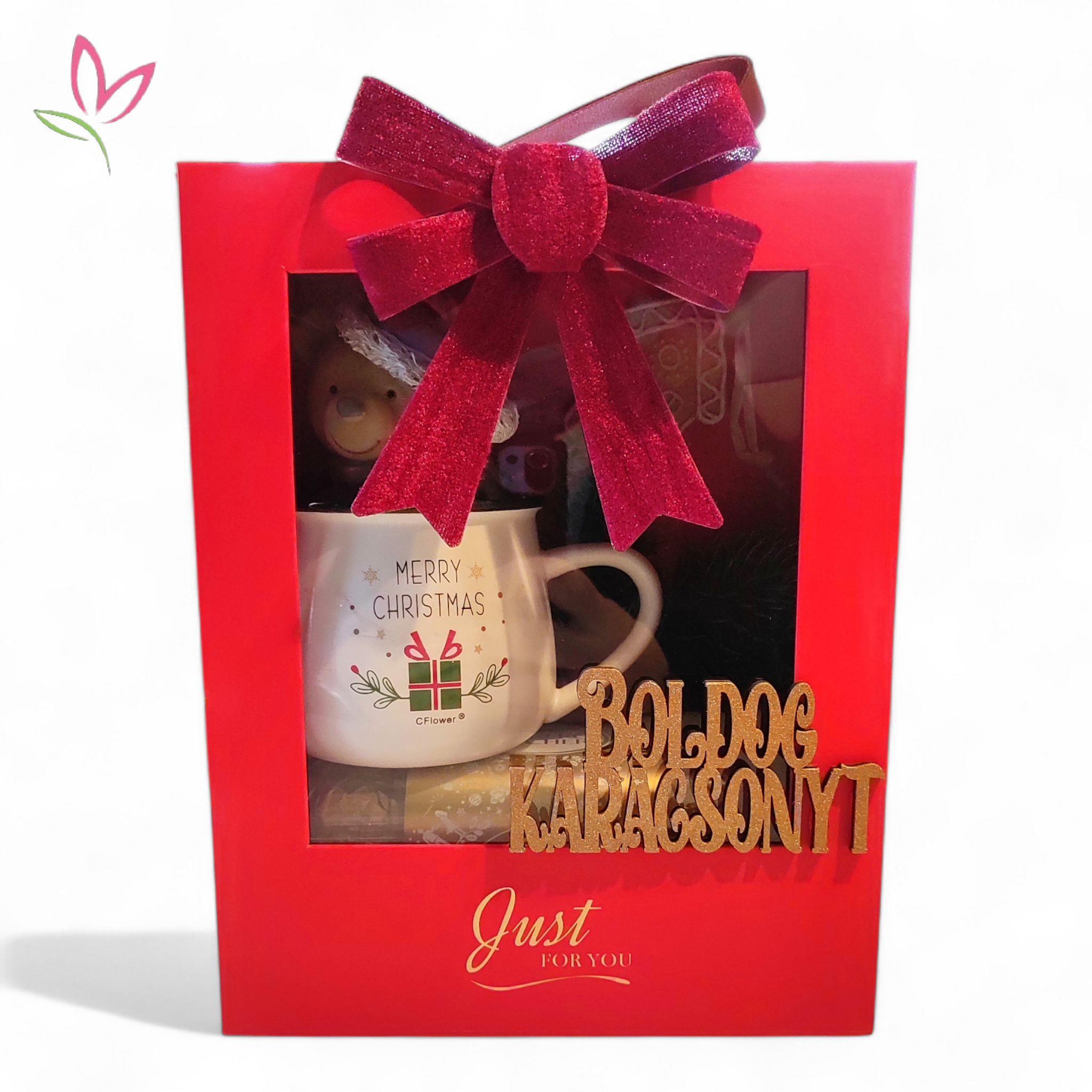 Karácsonyi ajándék box, amely minőségi kiegészítő egy szép virág mellé a meghitt pillanatokra.