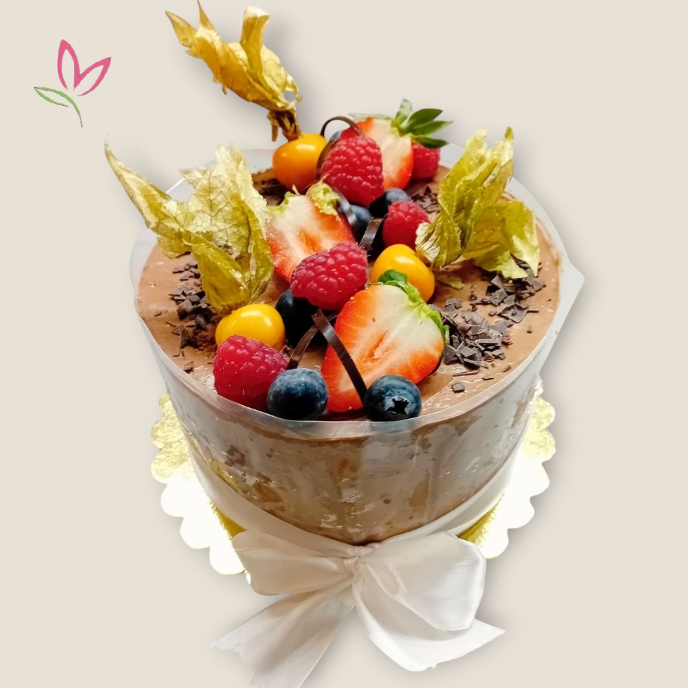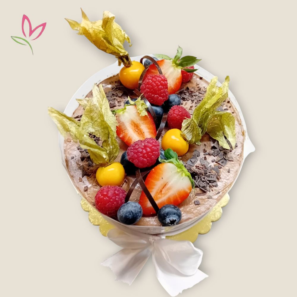 Incsiklandozó csokoládé torta amelyet finom csokis krém, puha piskóta és elragadó küllem jellemez a tetején elhelyezett gyümölcs decorral.