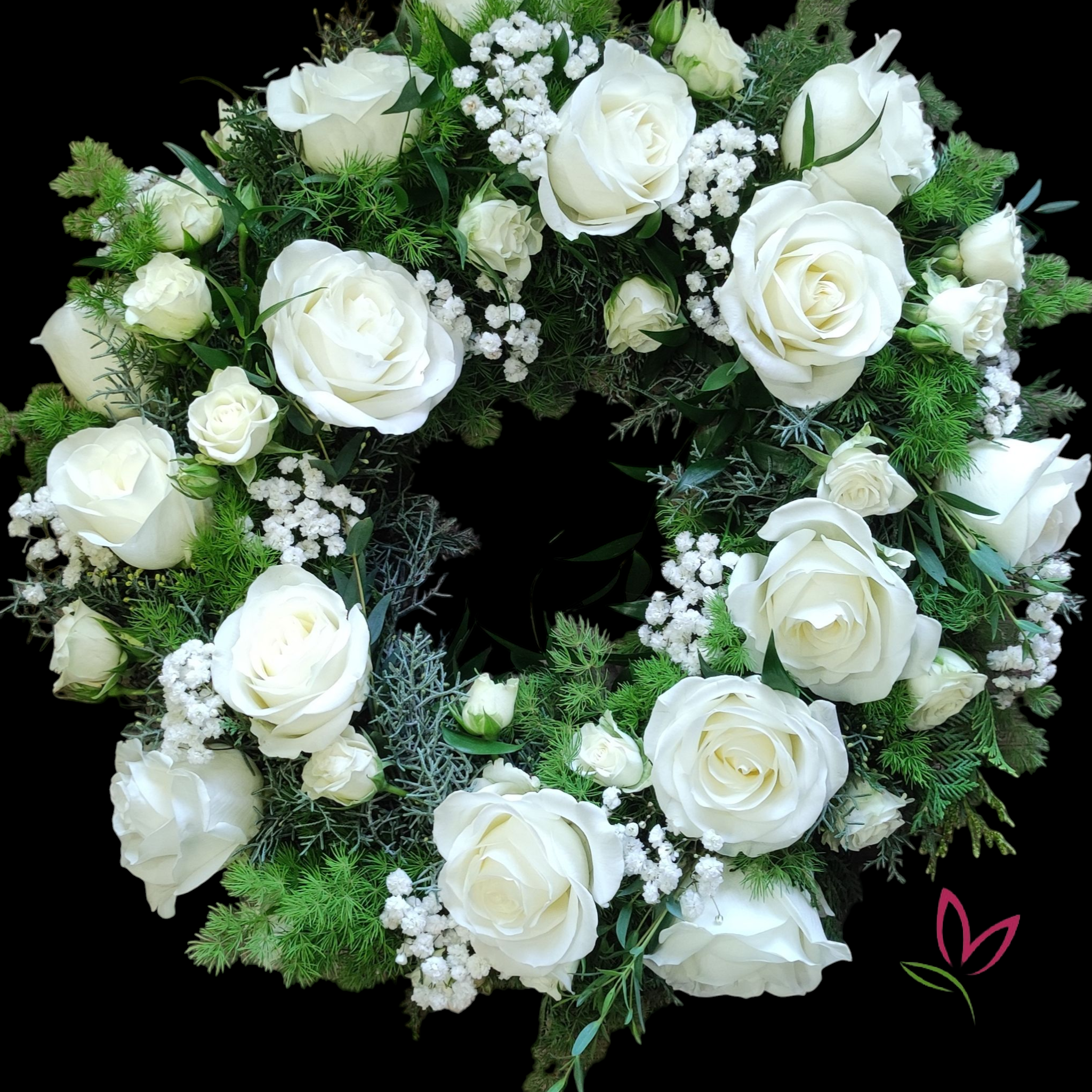 Hajós és vízi temetésre, megemlékezésre készült környezetbarát alapanyagú, fonott faág alapra épített görög koszorú.