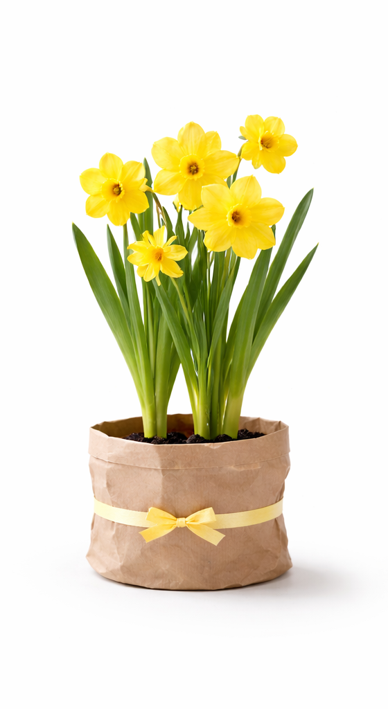 A cserepes nárciszok natur, modern díszitésben kerülnek kiszállításra, minimum 6 db rendelése esetén.