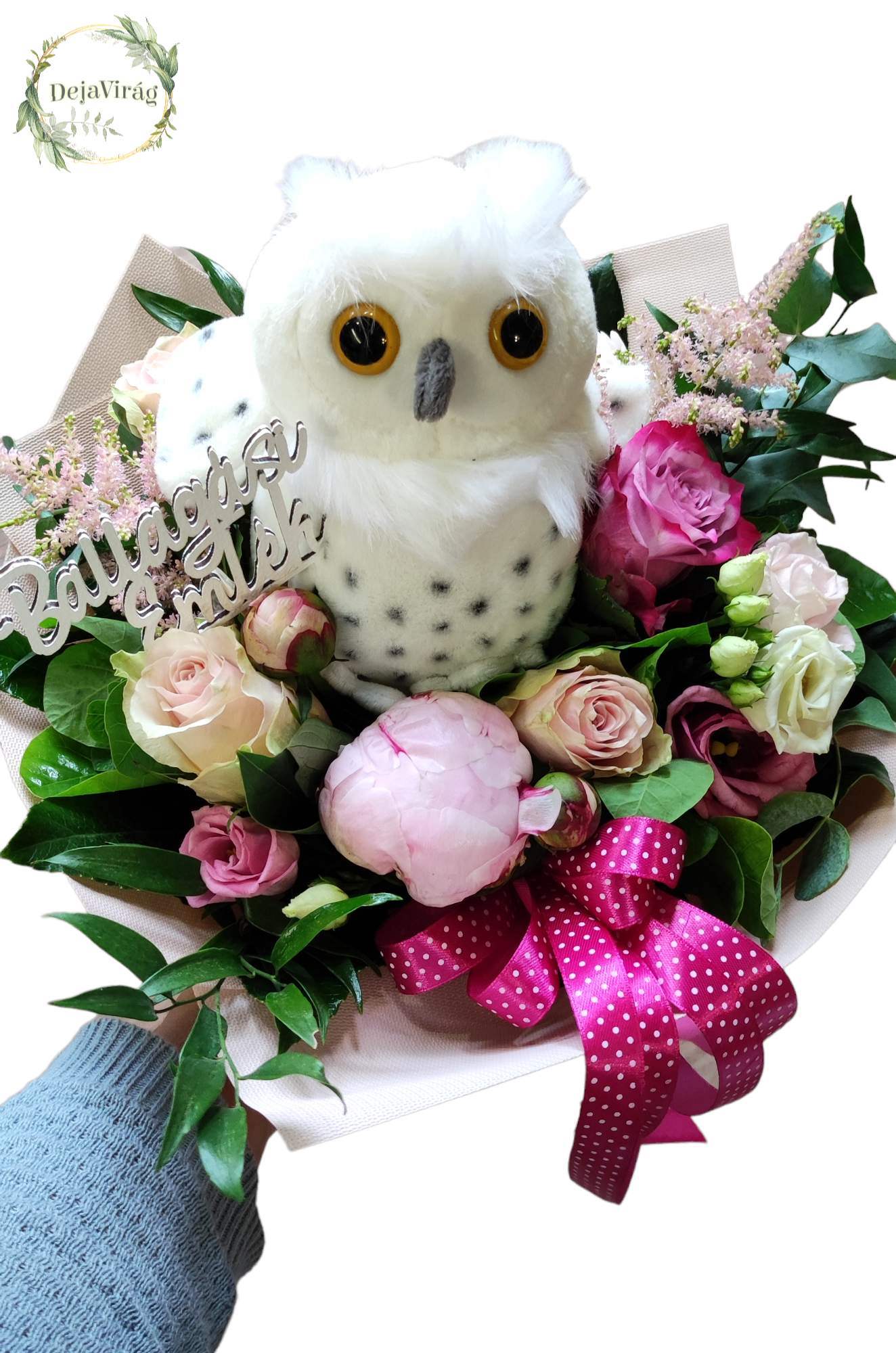 Egy ballagás elengedhetetlen része a virág és habár egyre inkább az a ternd, hogy nem a mennyiség a lényeg inkább legyen mutatós így a cuki plüssel kötött gyönyörű virág kompoziciónk megfelelő választás egy korszak lezárására.