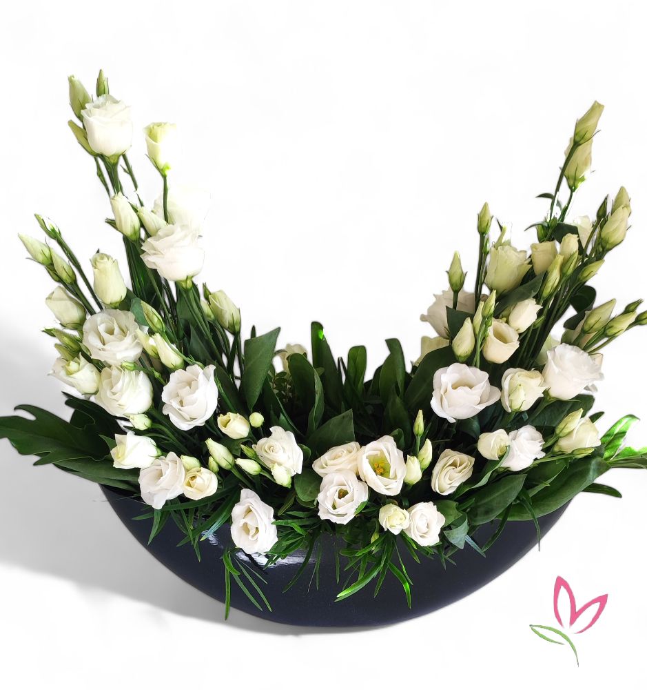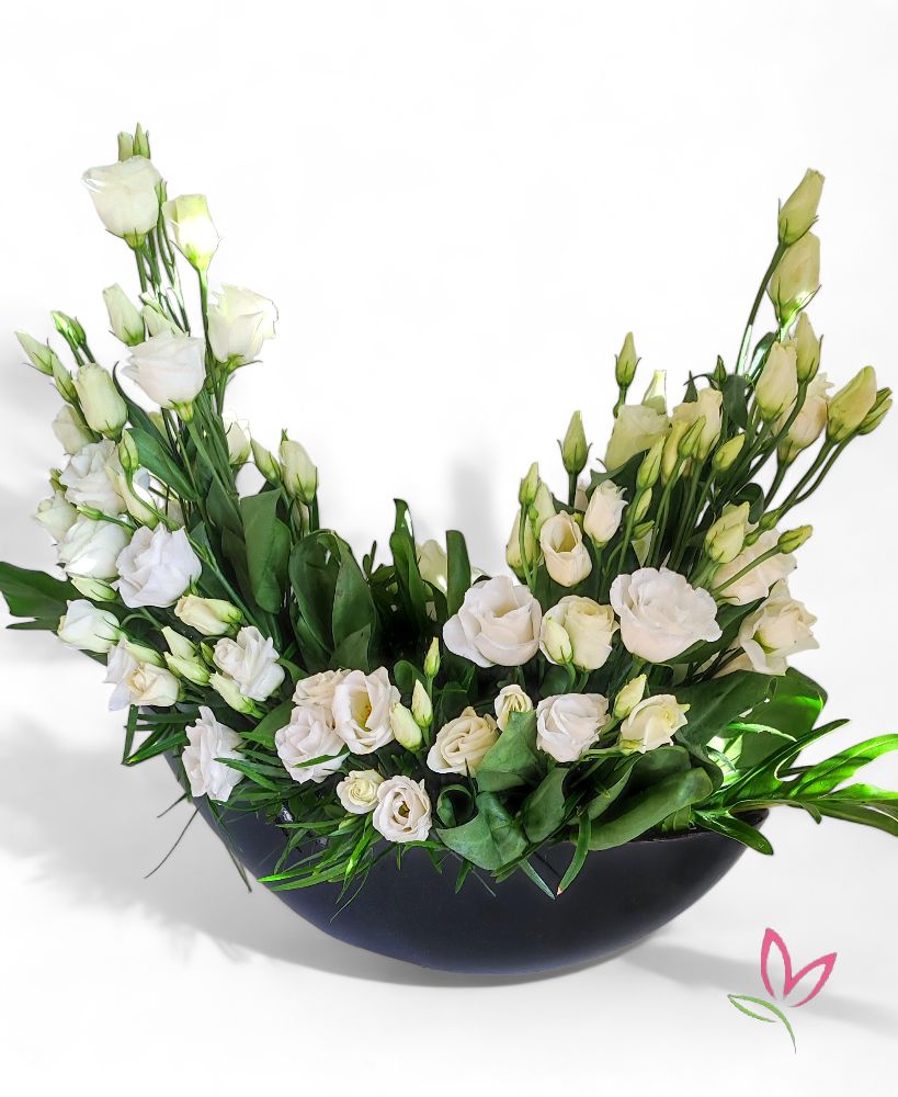 10 szál Liziantusz az ön által választott színben egy különleges kialakításban az asztal pompája lesz.