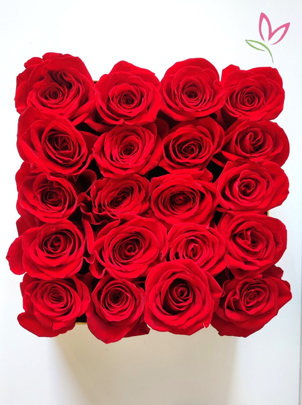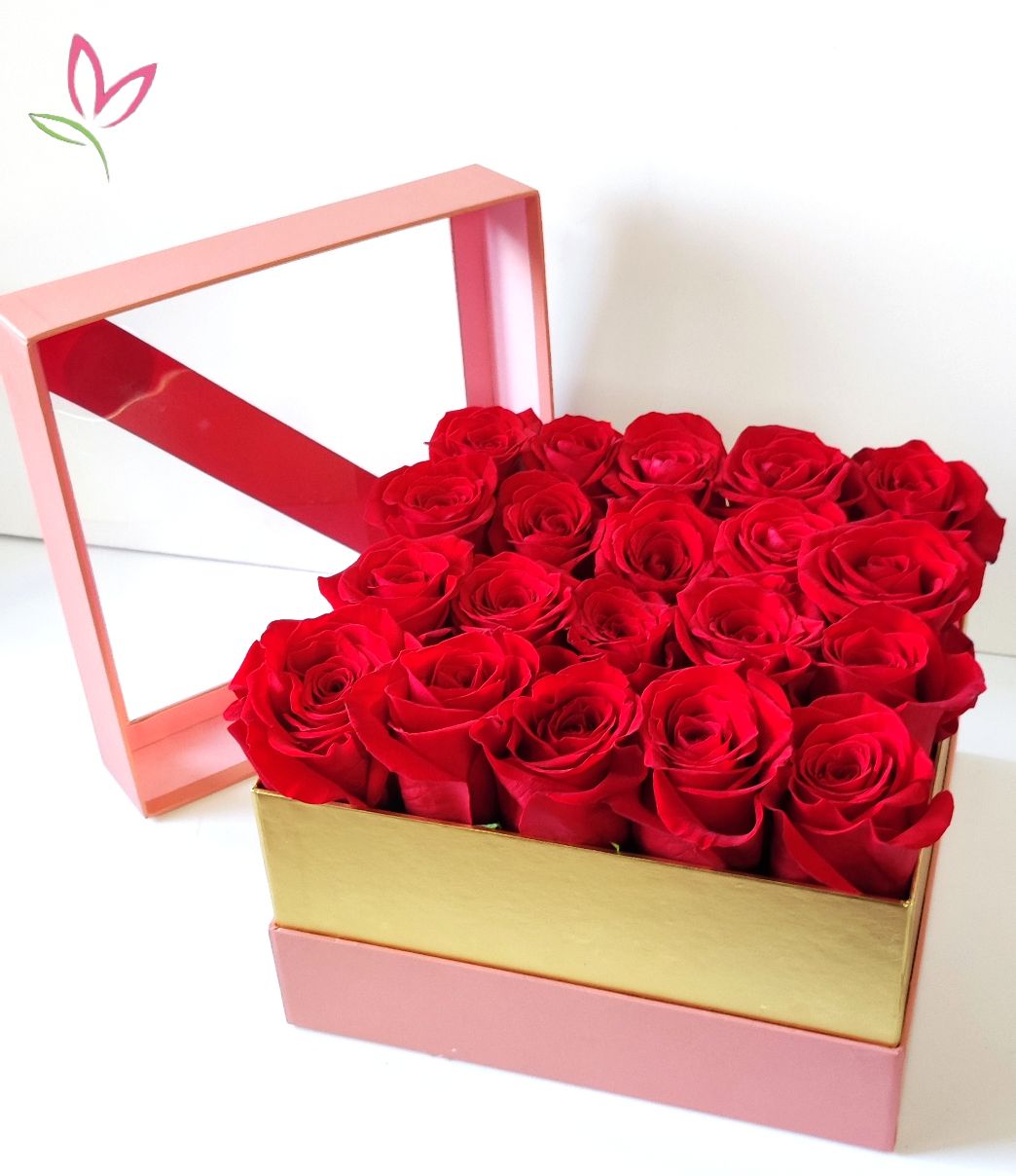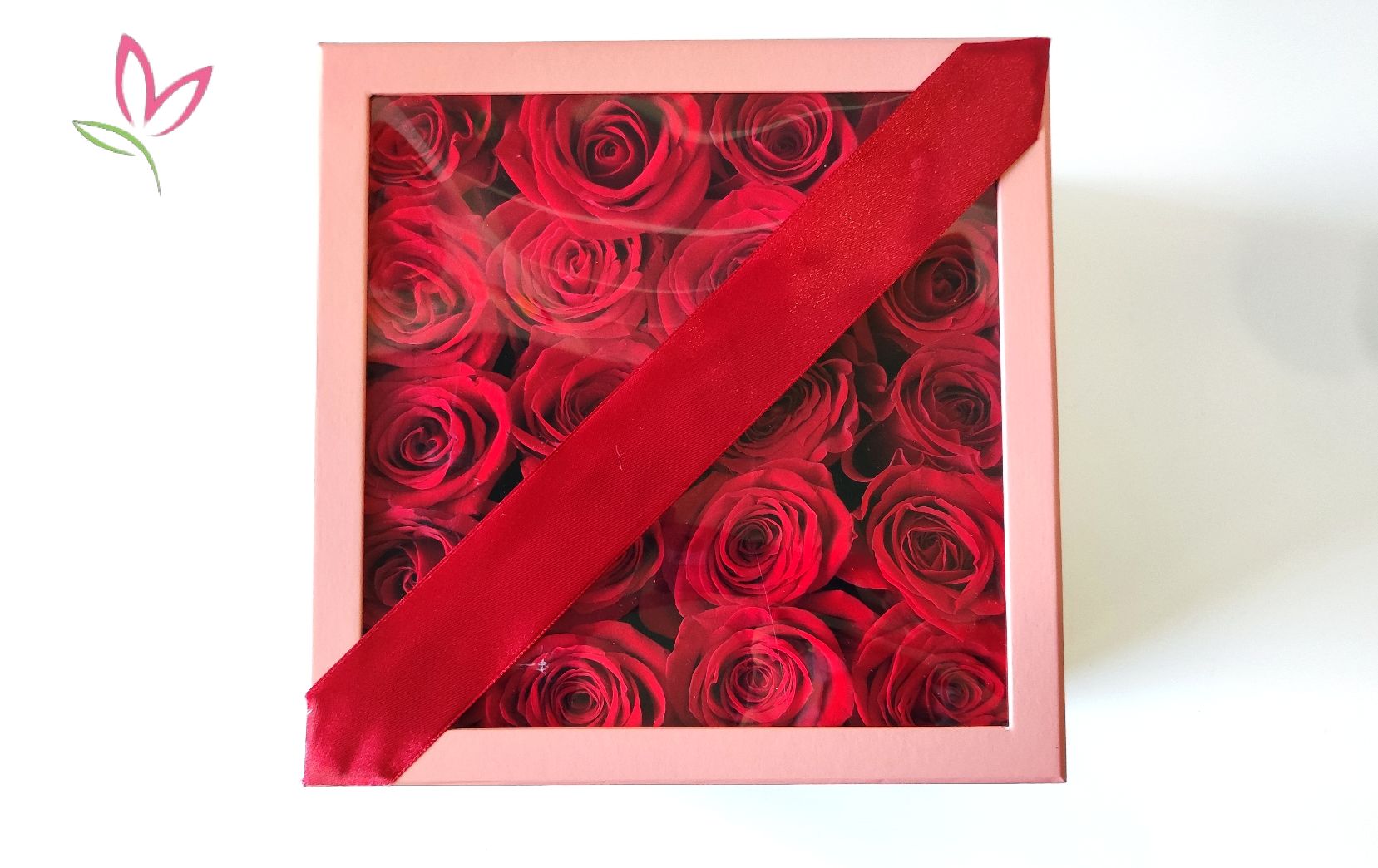 Különleges kocka box gyönyörű nagyfejű rózsával. Exluzív ajándék egy különleges alkalomra.