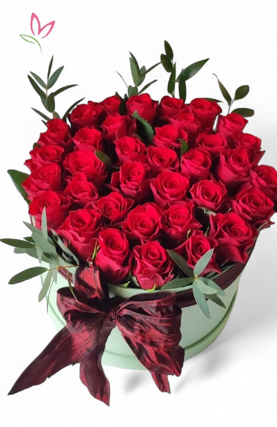 Gyönyörű és friss rózsáink egy modern kialakításban, napjaink nagy divatja a box amelynek legnagyobb előnye, hogy nem kell váza után kutakodnija annak aki a virágot kapja , hiszen ezek a virágok és ez esetben rózsák egy úgy nevezet vízes oázisba vannak tűzdelve amelyben még tartósabban is elálnak mint a vágott virág a sima vázában.